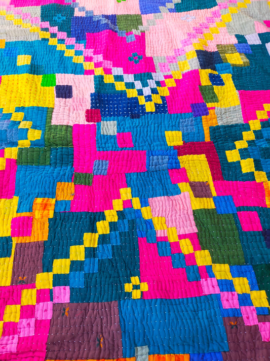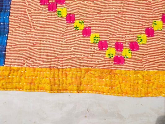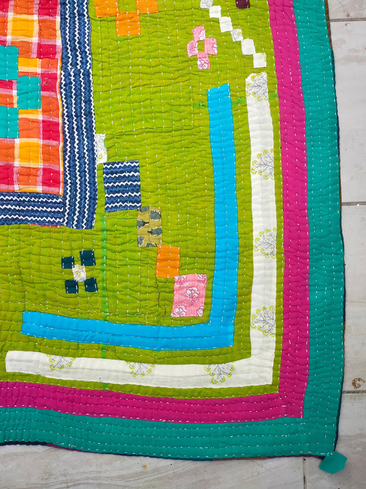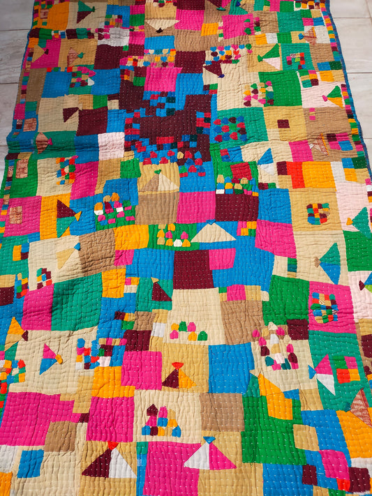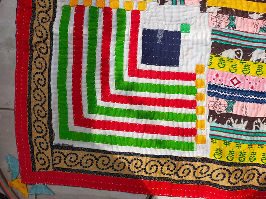 A Siddi Quilt-Hand Stitched By Tribal Women - Patchwork Kawandi Quilted Kantha Blanket From India