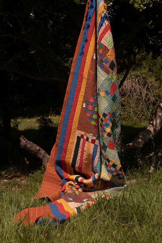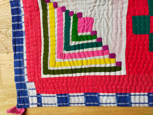 A Hand-Stitched Siddi Tribal Patchwork Kawandi Quilted Kantha Kavand Blanket From India