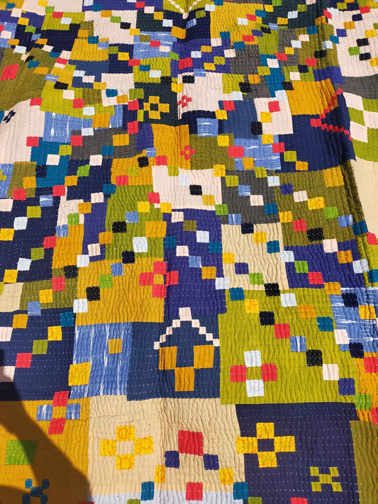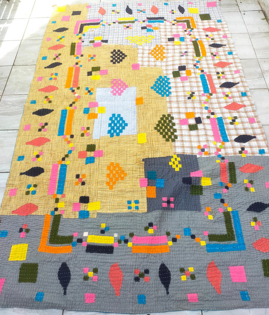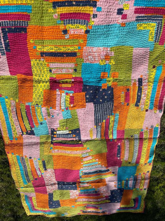 A Siddi Kavand - Kantha Quilt - Large Quilt Or Textile Art, Made With Up-Cycled Cotton - Hand-Stitched By Women In India