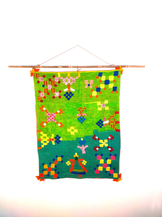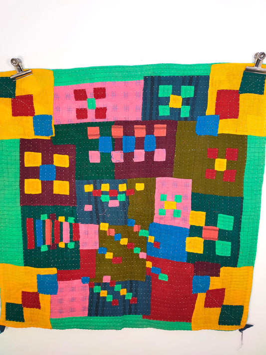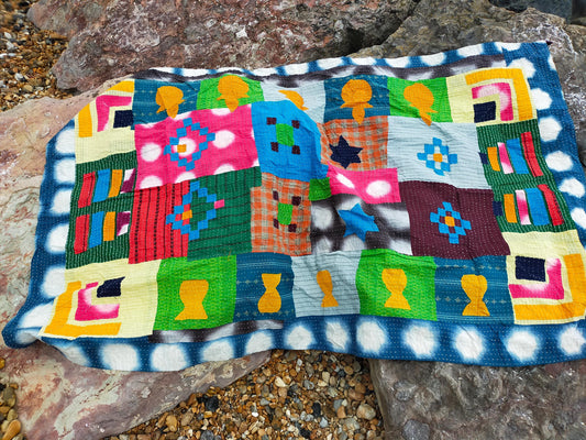 A Siddi Kawandi, Hand-Stitched Patchwork Kantha Style Baby Quilt Or Wall Hanging Made With Recycled Cotton In India