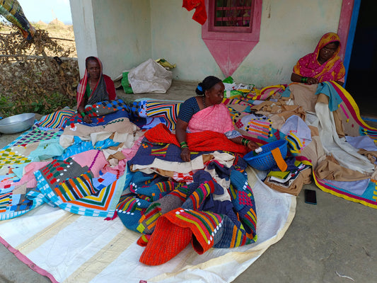 A Siddi Kavand - Quilted Patchwork Large Quilt, Made With Recycled Cotton - Hand-Stitched By African Indian Women In India