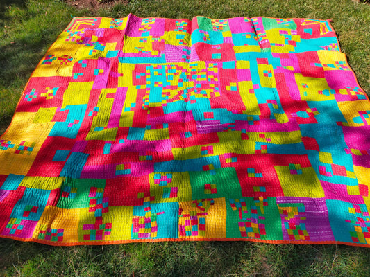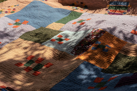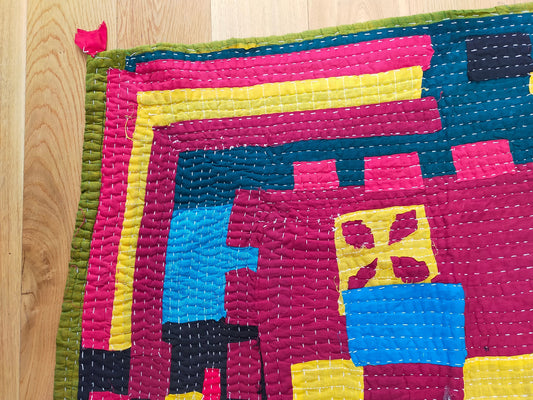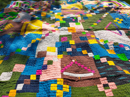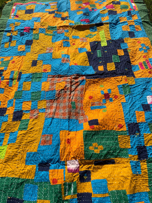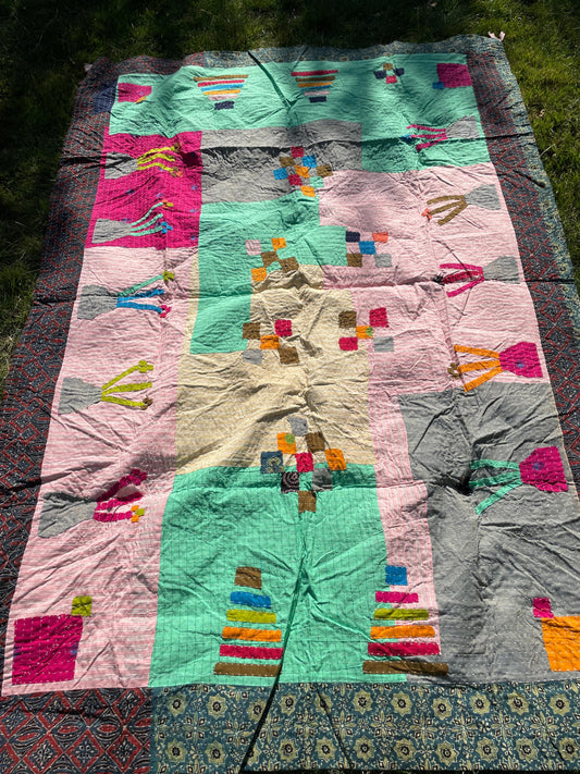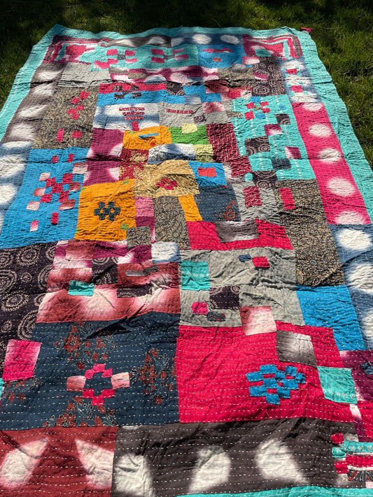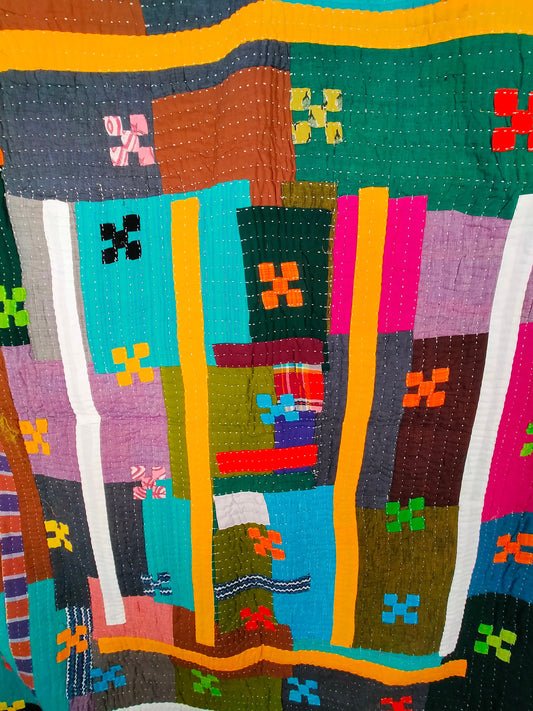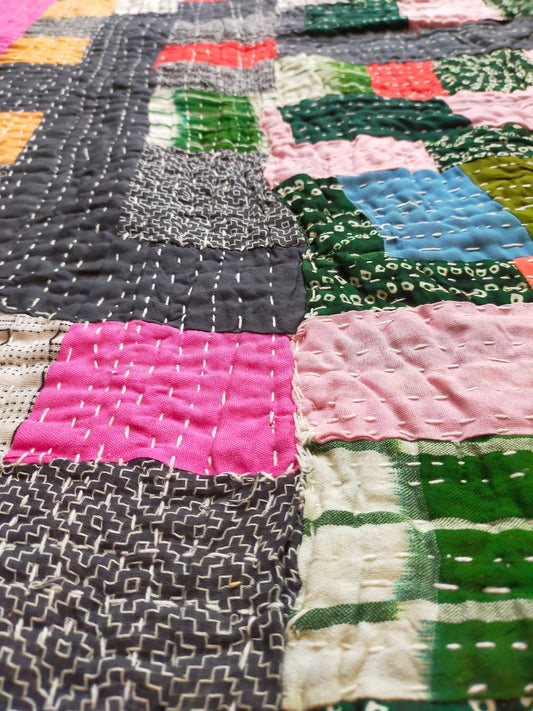 Siddi Tribal Patchwork Kantha Kawandi Kavand Quilted Blanket Made With Up-Cycled Cotton In India