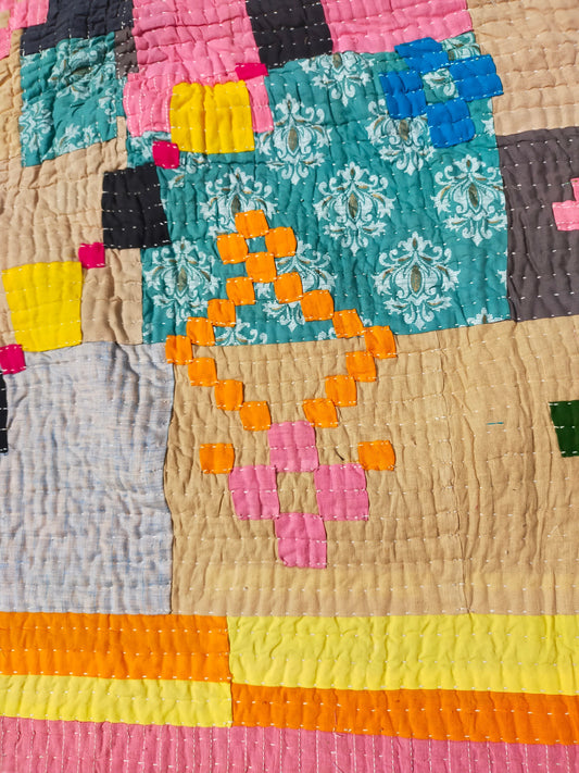 Siddi Tribal Patchwork Kawandi Quilted Blanket Kavand, Hand Stitched In India