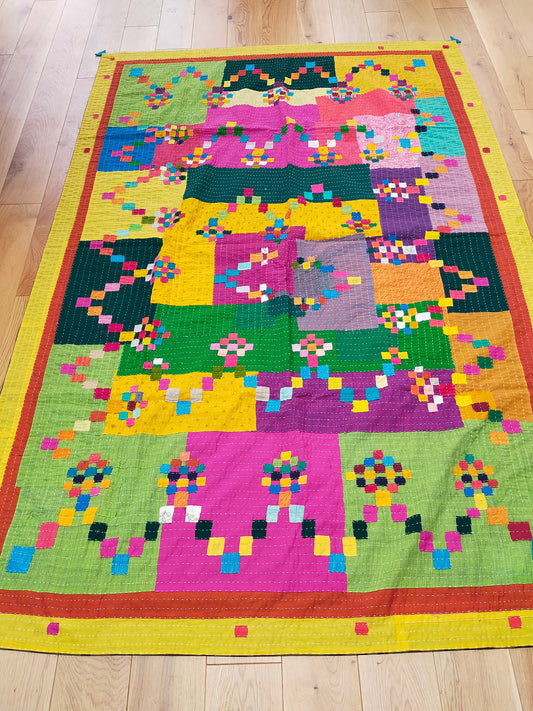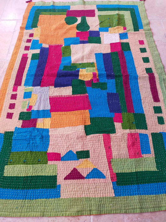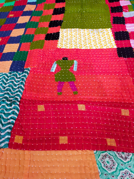 Siddi Tribal Patchwork Kawandi (Kavand) Quilted Kantha Blanket Made By Women India