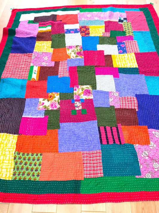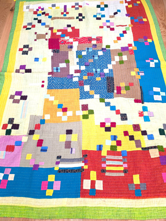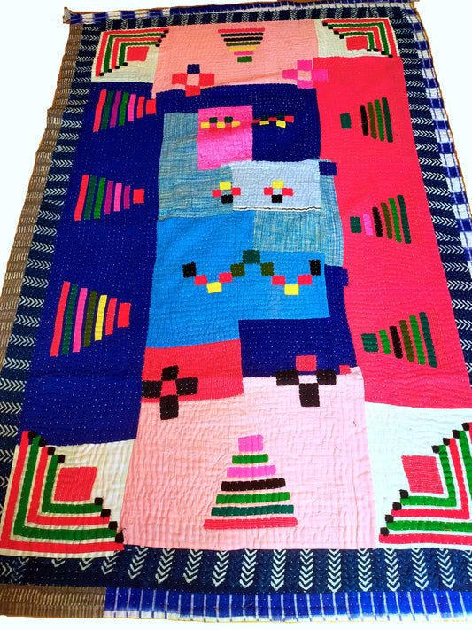 Siddi Tribal Patchwork Kavand Kantha Kawandi Quilted Blanket Made With Recycled Cotton In India
