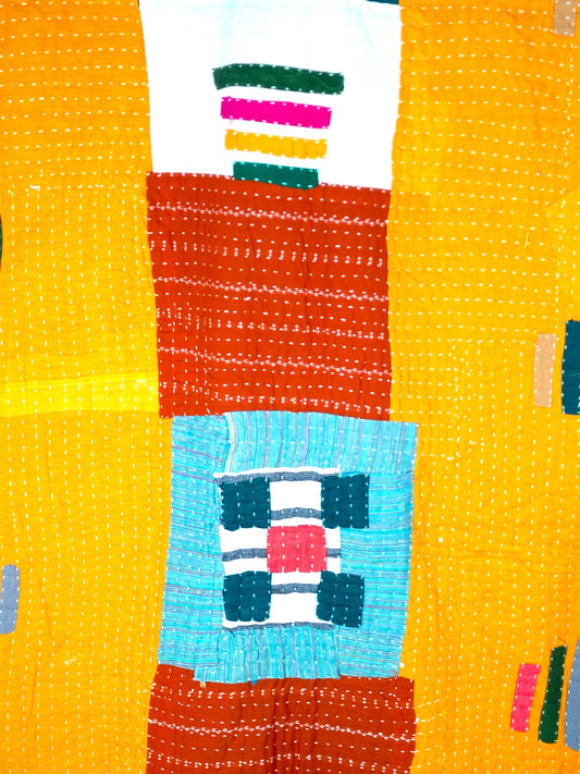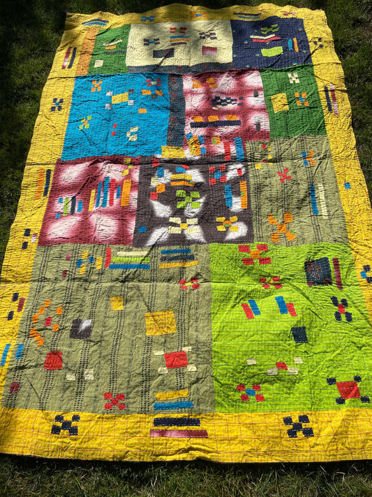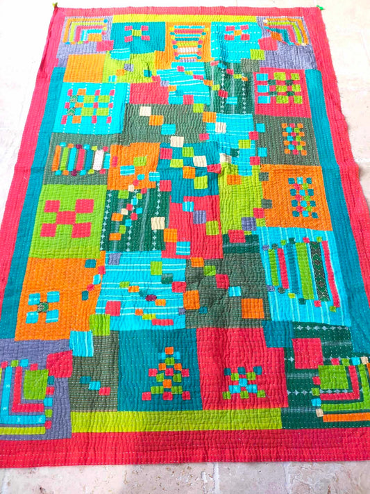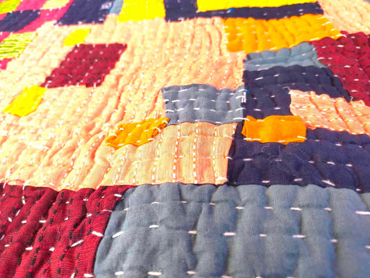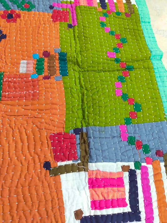 Siddi Tribal Patchwork Kawandi Kavand Quilted Blanket Made With Recycled Cotton In India - Similar To Kantha