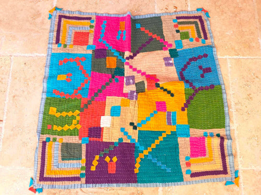 Siddi Tribal Patchwork Kawandi - For A Baby Or Wall Hanging - Quilted Kantha Blanket From India