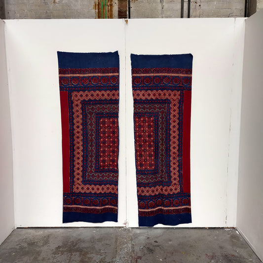 Two Naturally Dyed, Ajrakh Block Printed Throws, Shawls Or Fabric