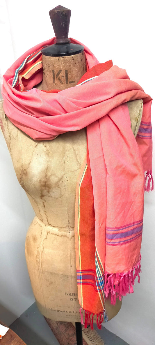 Two Tone, Handwoven Indian Khadi Pink Yellow Cotton Shawls