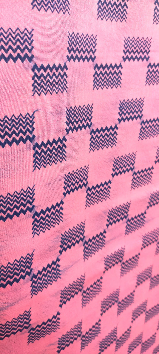 Two Pieces Of Pink and Blue Polished Cotton Batik from Ghana