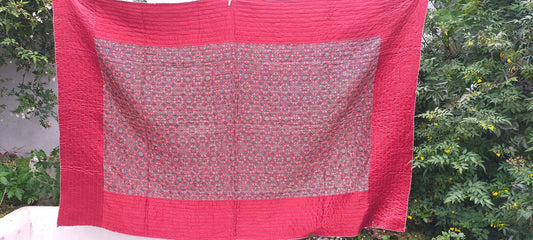 Silk And Cotton Ajrakh Block Printed Kantha Quilt Dyed in Natural Dyes
