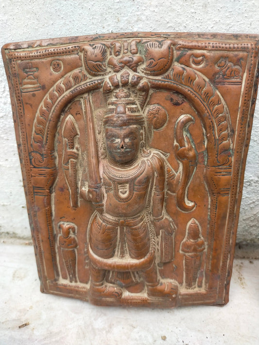 Two Rare Hindu Veerbhadra Religious Copper Relief Wall Plaques From Kutch, Gujarat