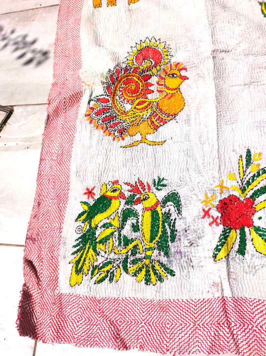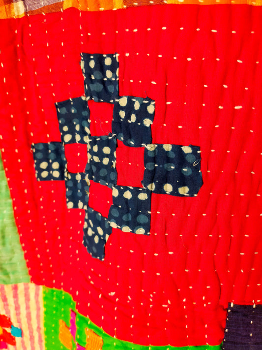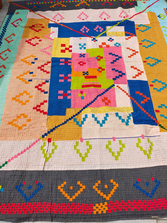 Siddi Tribal Patchwork Kawandi Quilted Kantha Blanket Hand-Stitched By Tribal Women In India