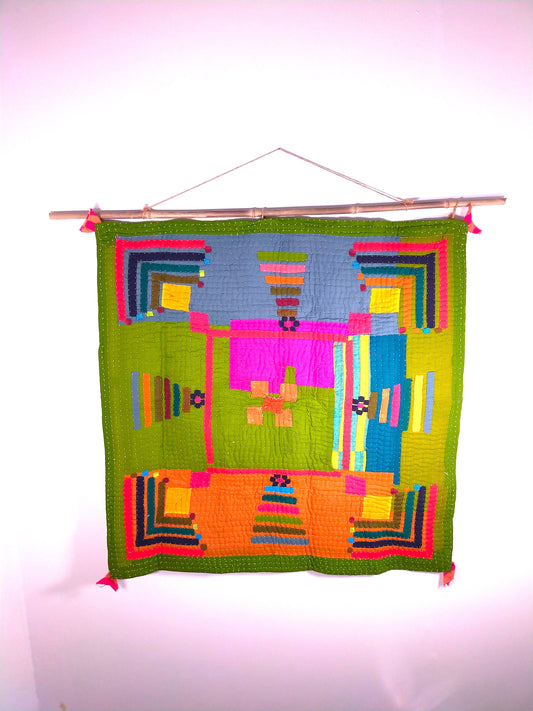 Tribal Siddi Kawandi Patchwork Baby Blanket Or Wall Hanging Textile Art - Similar to Kantha Quillts