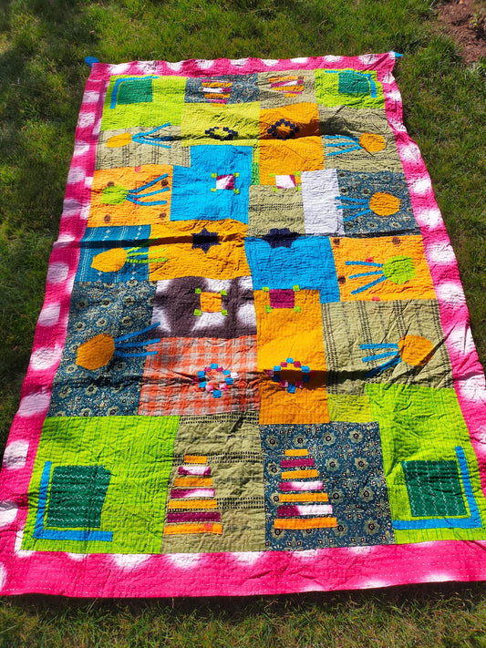 Siddi Tribal Patchwork Quilt (Kawandi) Quilted Blanket Hand Stitched By African Indian Women In India