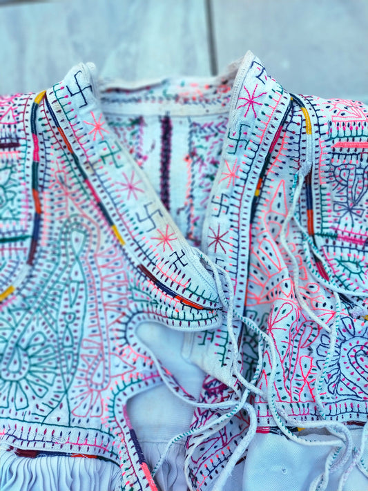 Vintage Indian Hand Embroidered Mens Rabari Tribal Shirt (kedia) From Kutch, Gujarat
