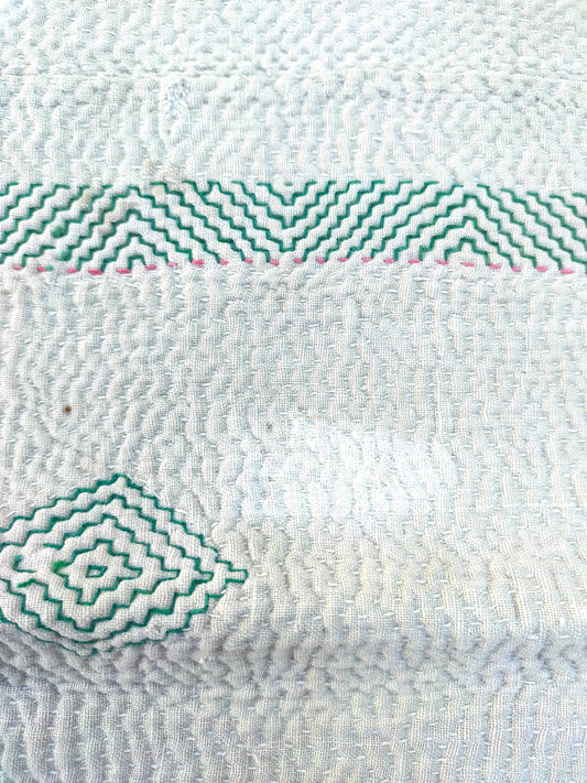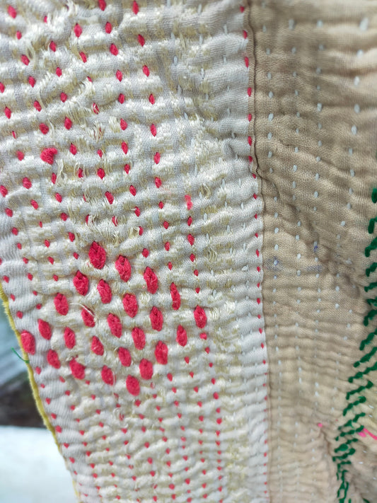 Vintage Hand-Stitched Kantha Quilt Made From Recycled Cotton Saris