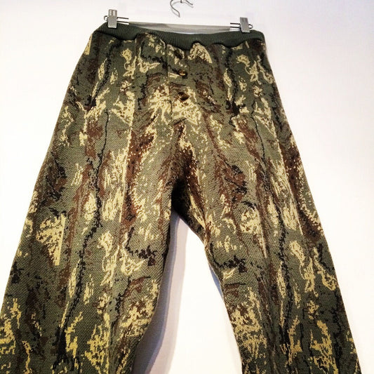 Cork print khaki wool and cotton long johns. Camo green