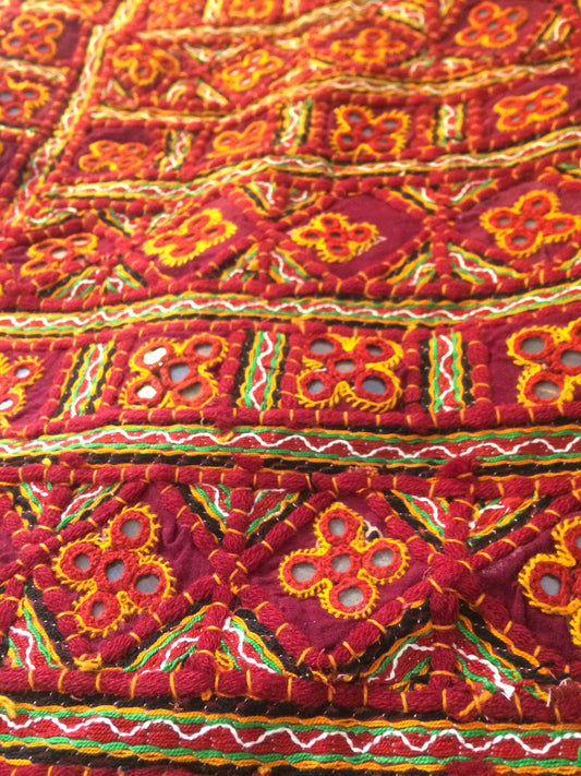 Banjara gipsy mirror work red tablecloth from Kutch.