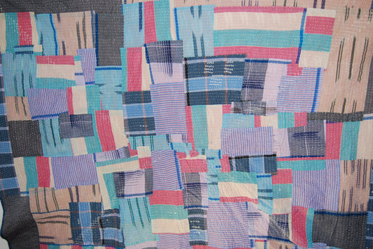 Hand Stitched Indian Kantha Siddi Quilt Made From Recycled Cotton Offcuts