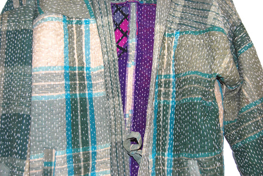 Fairtrade Indian Vintage Tartan Hand-Stitched Kantha Kimono Style Jacket -Unisex