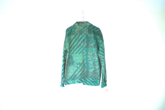 Fair Trade Kantha Kimono Jacket -Unisex Green Hand-Stitched