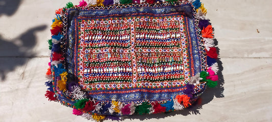 Antique Kutchi Dowry Bag/Cushion Cover With Applique. Mirror Work, Kantha and Hand Embroidery