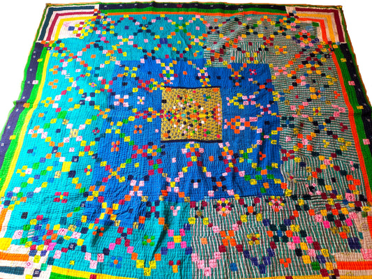 A Siddi Tribal Patchwork Kawandi Quilted Blanket Hand-Stitched In India