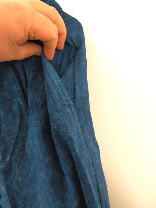 Handmade With Vintage Cotton Kantha Elasticated Trousers Pants, Over-dyed With Natural Indigo.