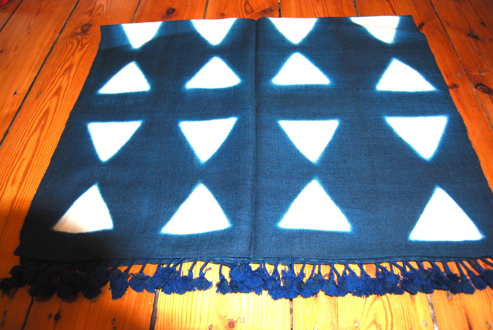 Handwoven merino wool shawls from the Kutch region of Gujarat. These are unisex scarves and are very soft and not itchy on the skin. They are clamped with different shapes and dipped into the dye vat to give them interesting patterns.