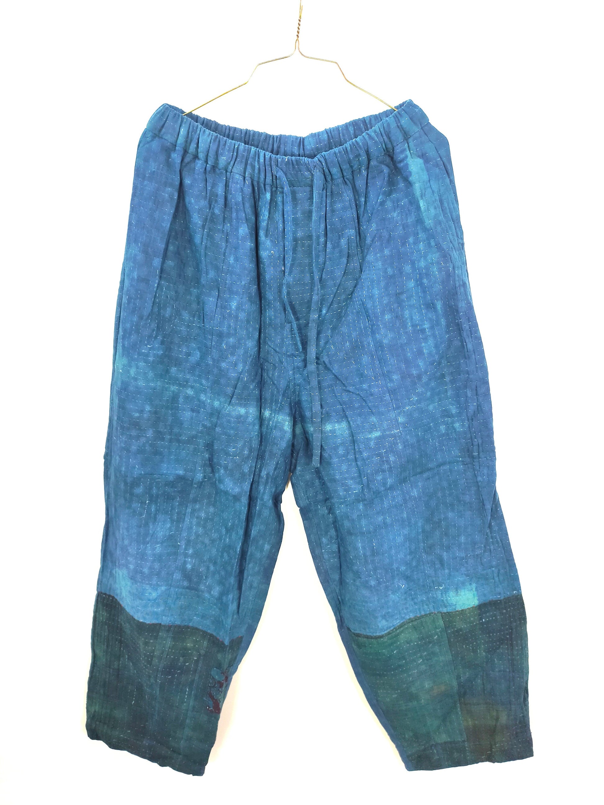 Handmade With Vintage Cotton Kantha Elasticated Trousers Pants, Over-dyed With Natural Indigo.