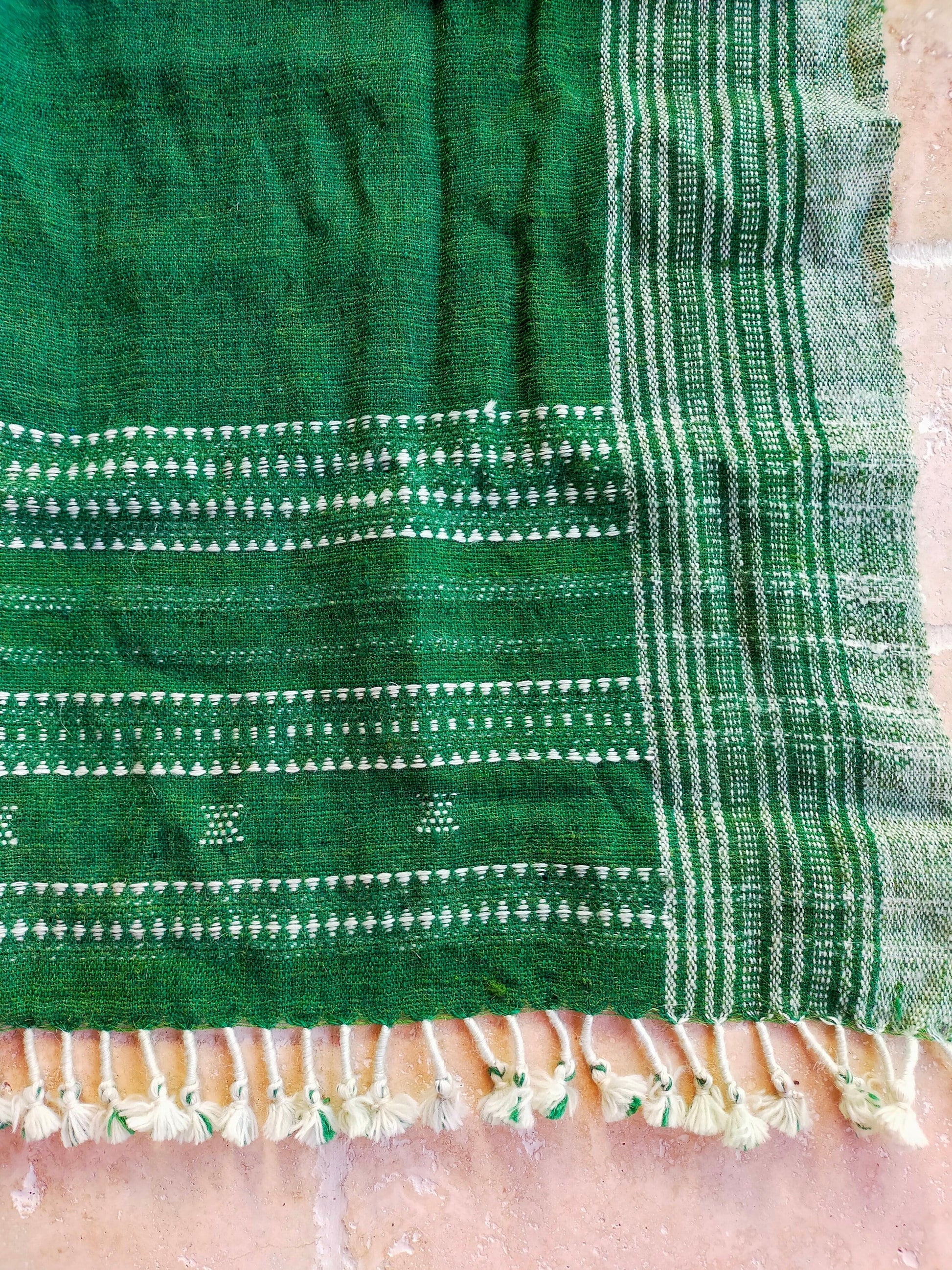 Handwoven Desi Wool (indian wool) Green Shawls/Throws From Kutch Gujarat