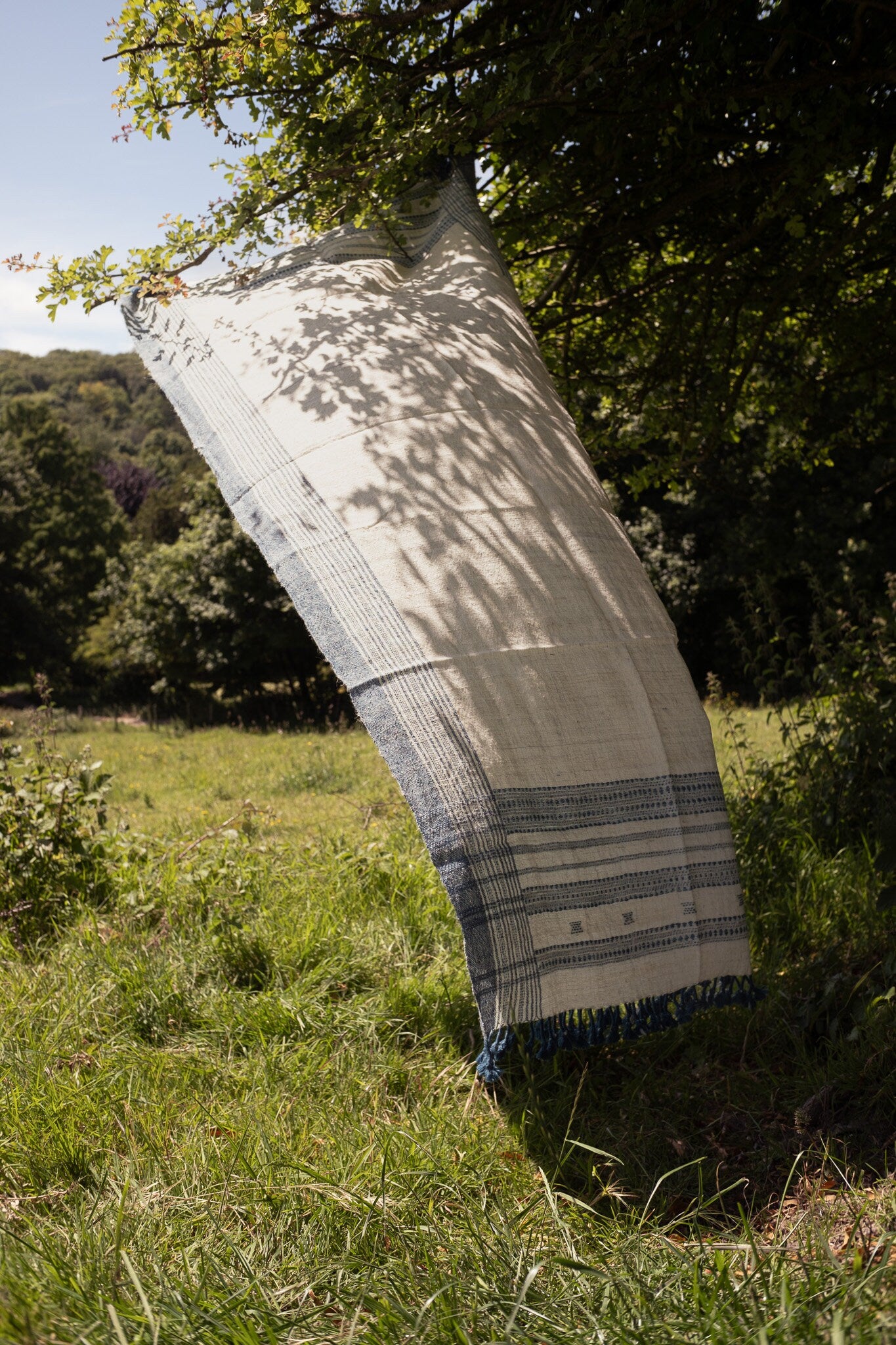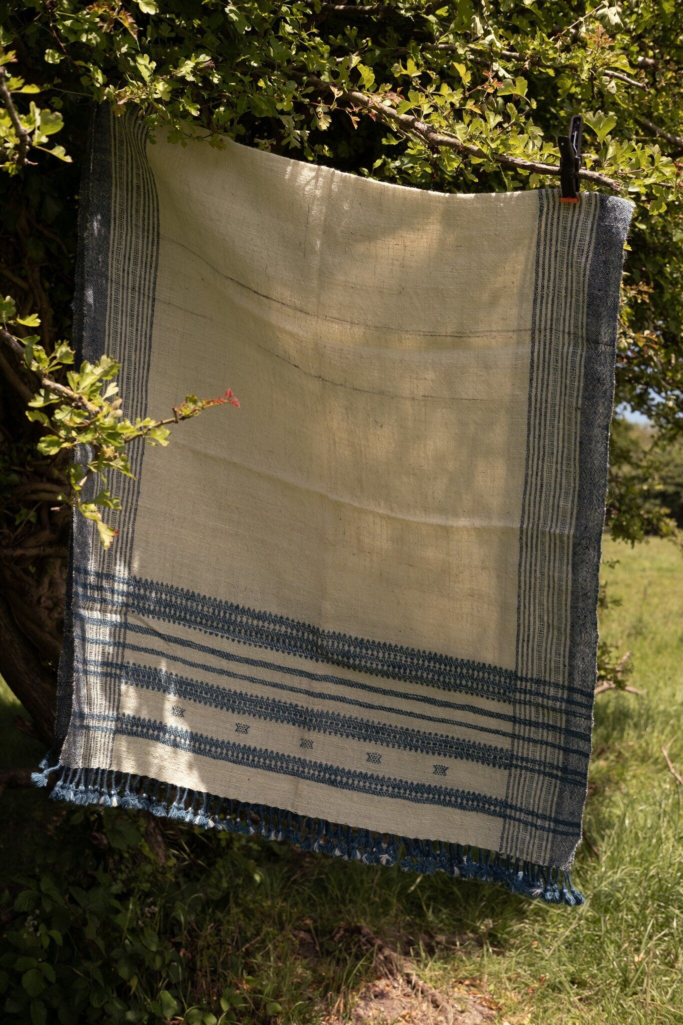 Handwoven woolen shawl/ throw from the desert region Kutch in Gujarat, India. These are ideal to keep you warm in winter or as an attractive throw for a bed or sofa. They are beautifully handwoven and hand-dyed with handspun wool and natural indigo.