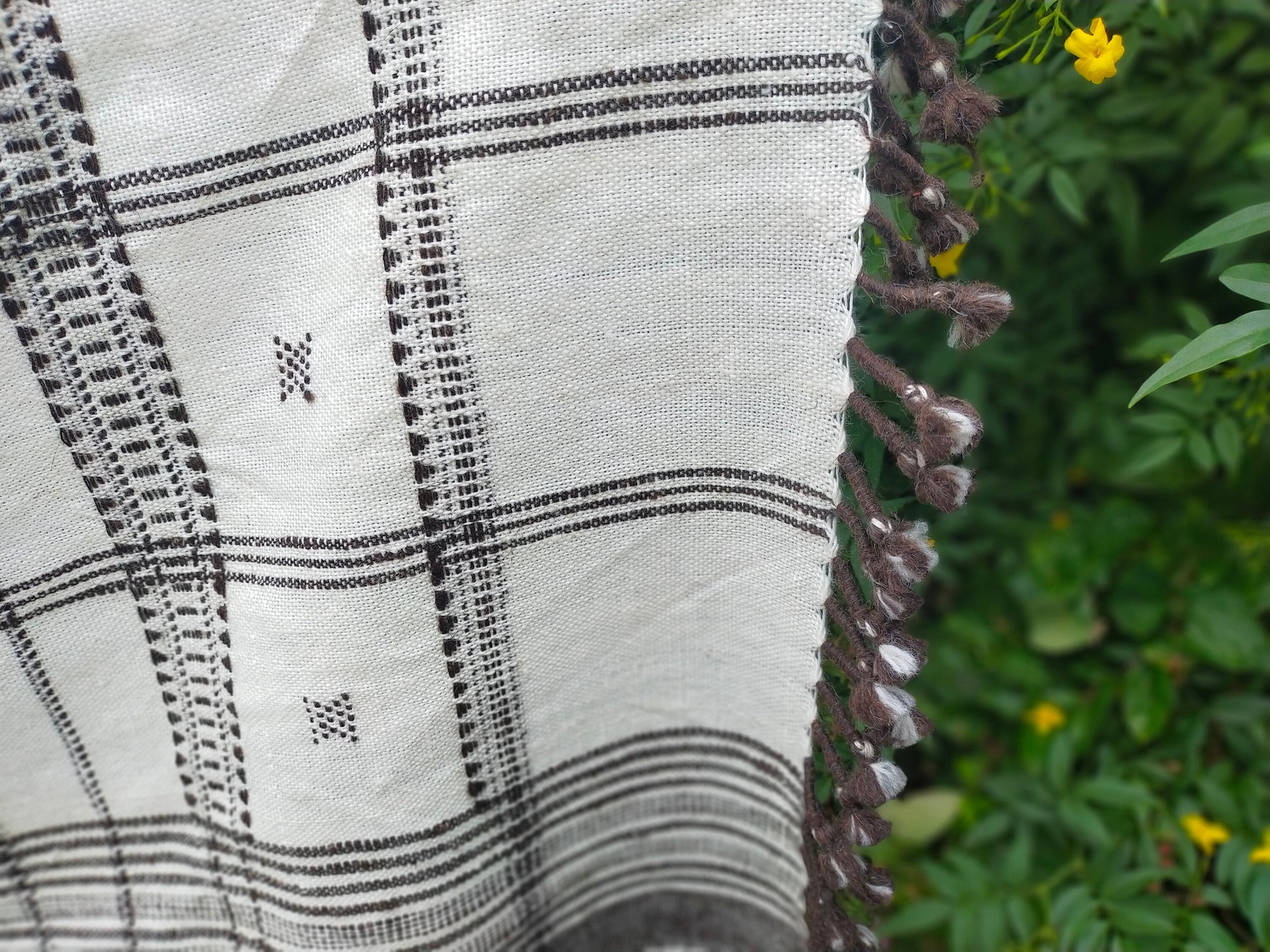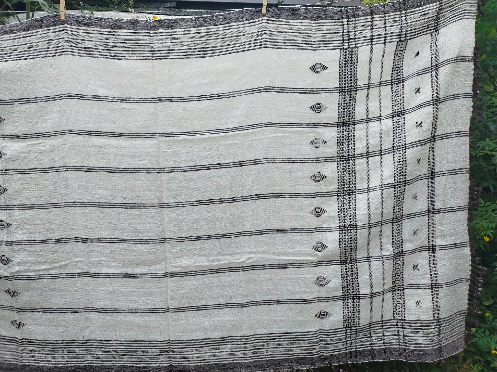 Handwoven woolen shawl/ throw or table cloth from the Kutch district of Gujarat, India.