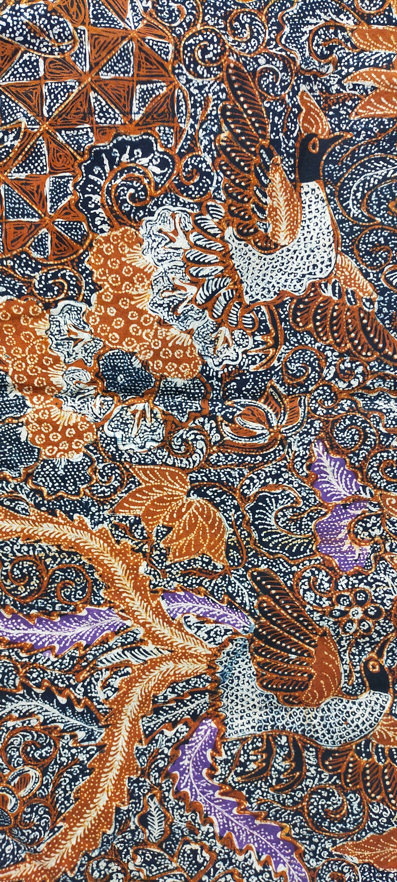 This is a large, traditional Indonesian batik. The edges are finished so it could be used as a throw for the sofa or as a garment: a shawl, wrap or sarong.
