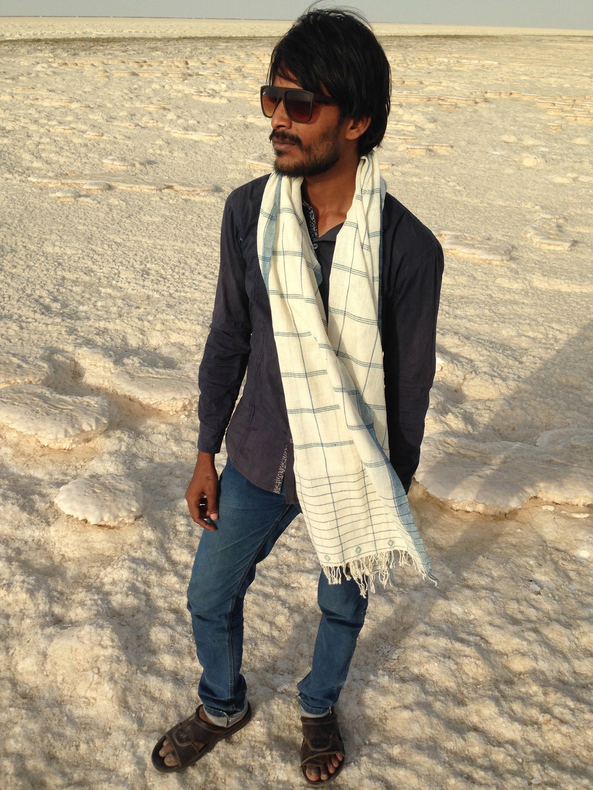 Natural Organic Kala Cotton Hand Woven Scarf From Kutch