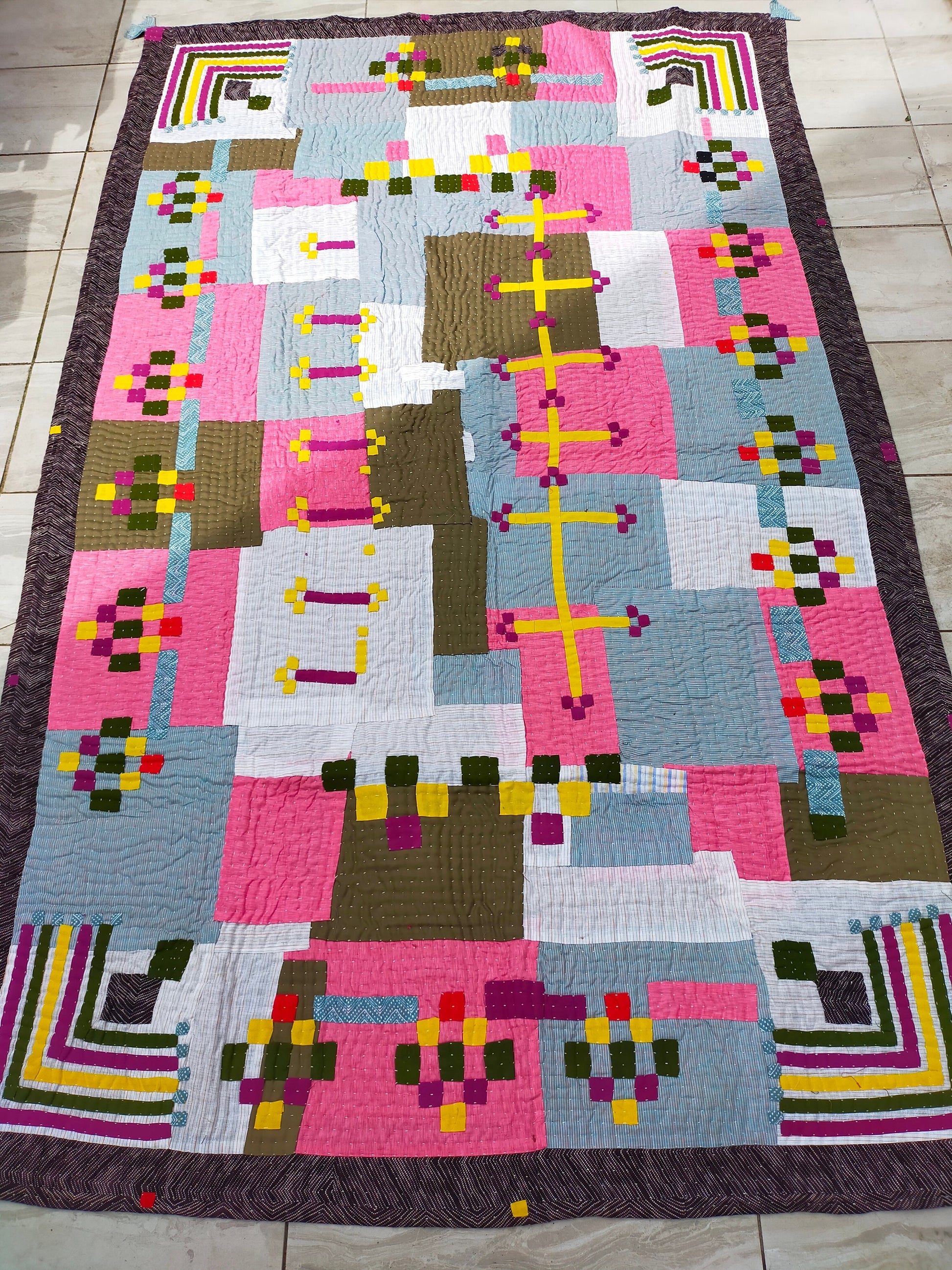 This quilt is similar to the Kantha style of west Bengal but is actually called a 'Siddi Kawandi'.