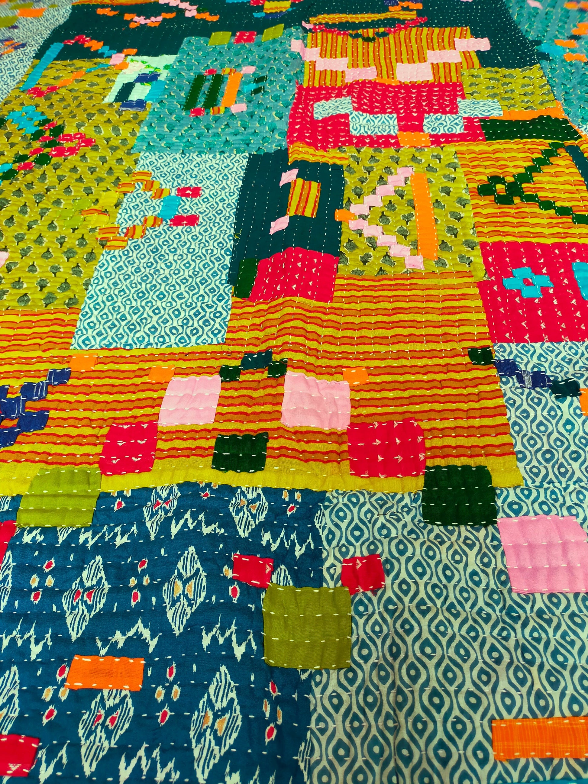 This quilt is similar to the Kantha style of west Bengal but is actually called a 'Siddi Kawandi'.