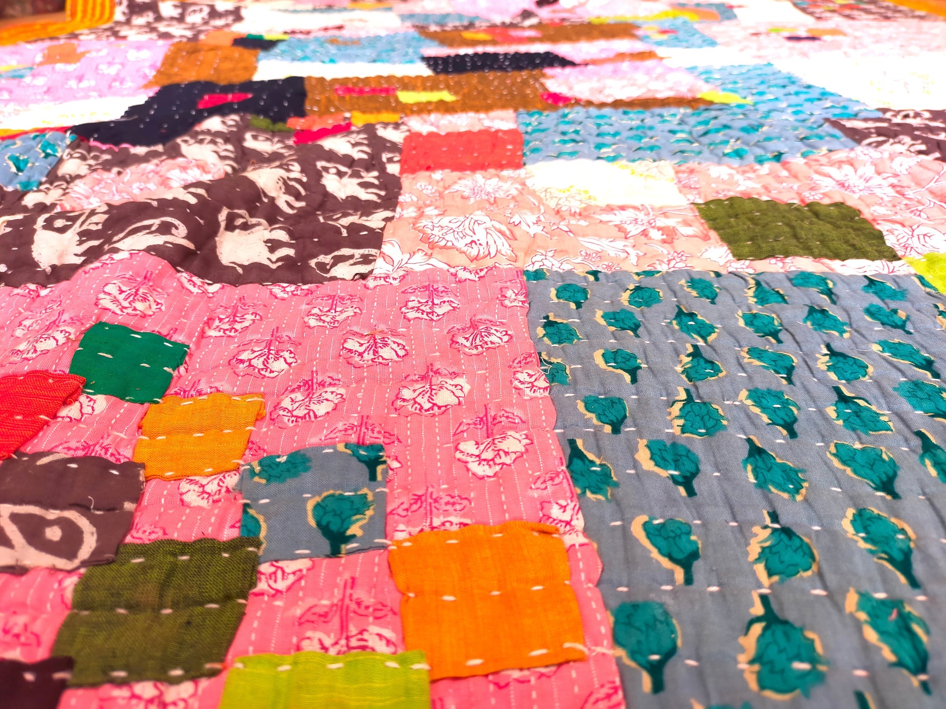 Siddi Kawandi - A Patchwork Kantha Quilt Or Throw Made With Cotton Offcuts - Hand-Stitched By African Indian Women In Karnataka
