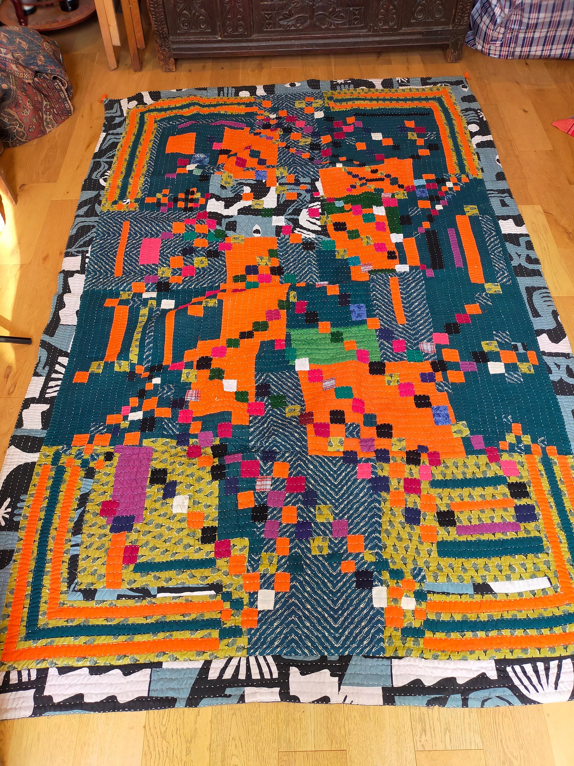 This quilt is similar to the Kantha style of west Bengal but is actually called a 'Siddi Kawandi'.