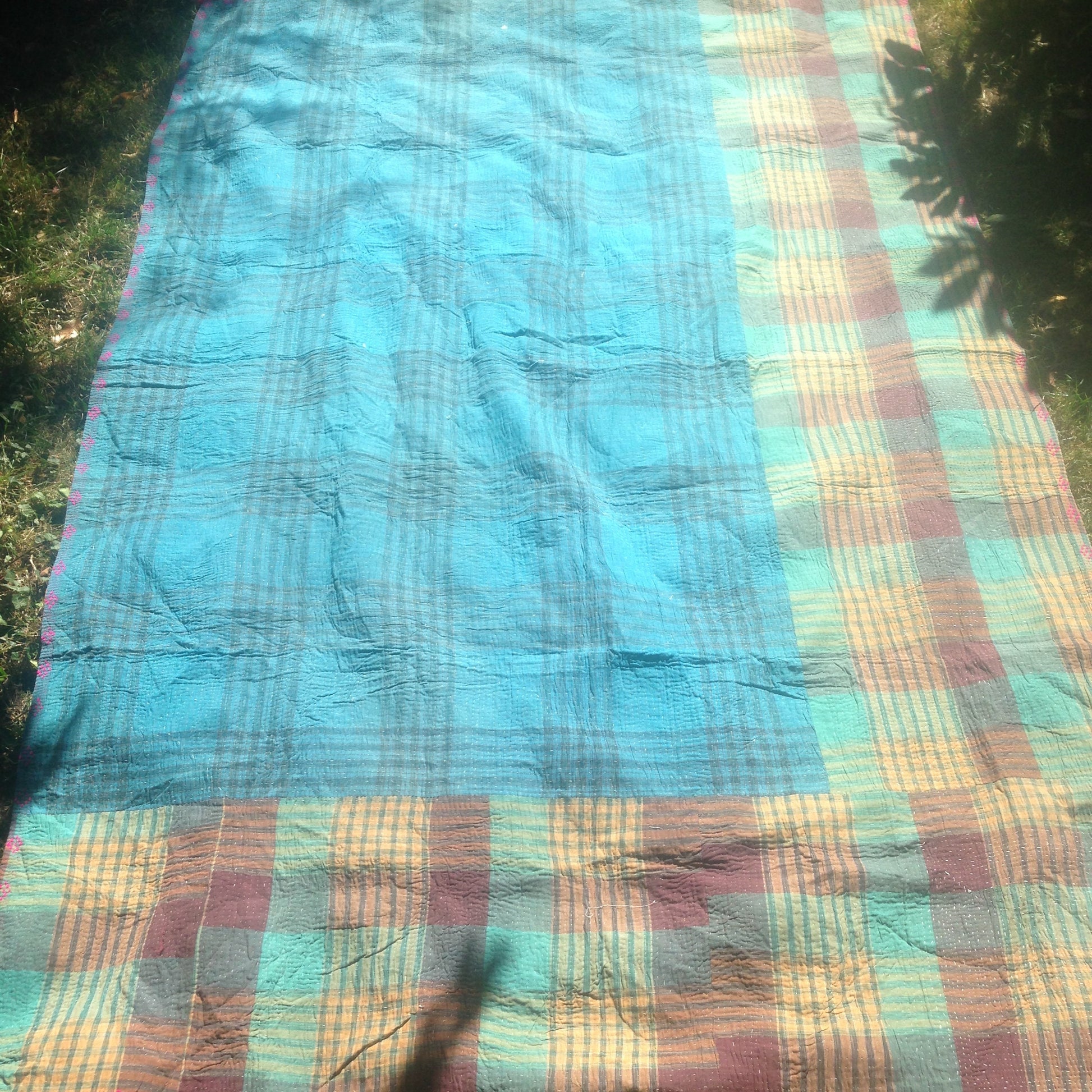 Vintage hand-stitched kantha throw from West Bengal. Made from recycled fabric. Can be used on a sofa or bed.